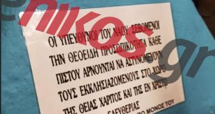 Read More »Για γέλια ή για κλάματα; – Η προειδοποίηση σε εκκλησία για τον κορονοϊό – ΦΩΤΟ