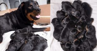 Ροτβάιλερ γέννησε 15 κουτάβια, και κανείς δεν το περίμενε! H ιδιοκτήτρια του ροτβάιλερ ενθουσιάστηκε όταν έμαθε πως η δίχρονη σκυλίτσα της περίμενε κουτάβια. Αλλά δεν ήξερε το πόσα θα έκανε. Εξαιτίας του κόστους του υπερήχου δεν μπορούσε να της τον κάνει. Έτσι της είπαν να περιμένει 6-8 μωρά. …