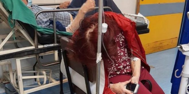 Η ανάρτηση που έγινε στο Facebook, αναδημοσιεύτηκε από χρήστες του διαδικτύου, ηθοποιούς και σελίδες κοινωνικού ενδιαφέροντος. Μια ηλικιωμένη γυναίκα καθισμένη σε καρέκλα μέσα σε θάλαμο του νοσοκομείου, γέρνει ταλαιπωρημένη το κεφάλι της. Όπως διακρίνεται, οι γιατροί της έχουν χορηγήσει ορό και εκείνη περιμένει υπομονετικά να αδειάσει κάποιο κρεβάτι.