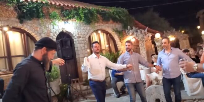 Ο Αντώνης αλλά και οι υπόλοιποι μουσικοί – συνεργάτες του, πιάνουν τον χορό, σε μια μάζωξη με αρκετούς Αμερικάνους στην Κρήτη.